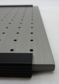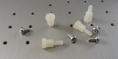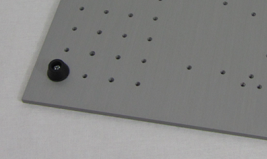 The remainder of the Threadboard is patterned with a 15mm x 15mm matrix of M3 tapped holes or support for the mounting of breadboards. |